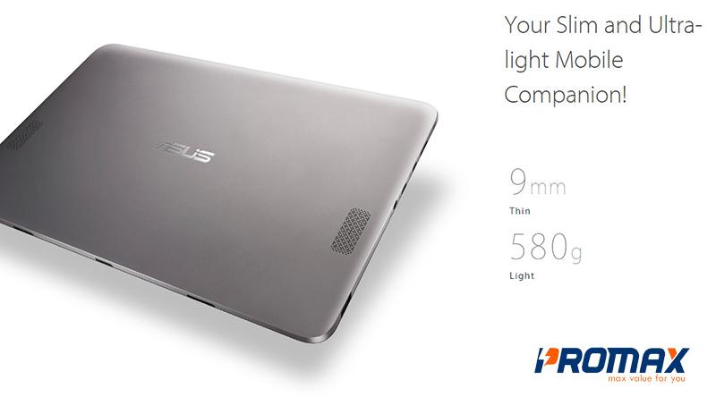 QuaAsus Transformer Book T101 HA có thể thấy tham vọng của Asus khi muốn biến một chiếc máy tính bảng có đầy đủ sự tiện gọn nhưng năng suất làm việc của thiết bị luôn tuyệt vời. Kích thước thực chính xác của máy chỉ 9mm và nặng chỉ 580gram. Kể cả có đính kèm theo bàn phím nhưn T101 HA vẫn gọn nhẹ, vô cùng thân thiện cho bạn khi đi du lịch, công tác xa khi dày chỉ 19mm và nặng chỉ 1kg.